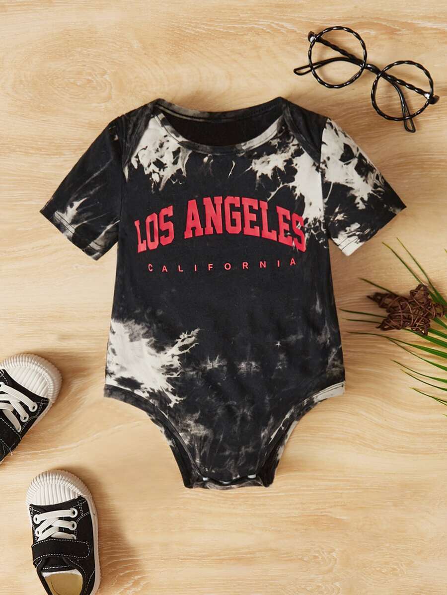 SHEIN Baby Boy Tie Dye Letter Graphic Bodysuit