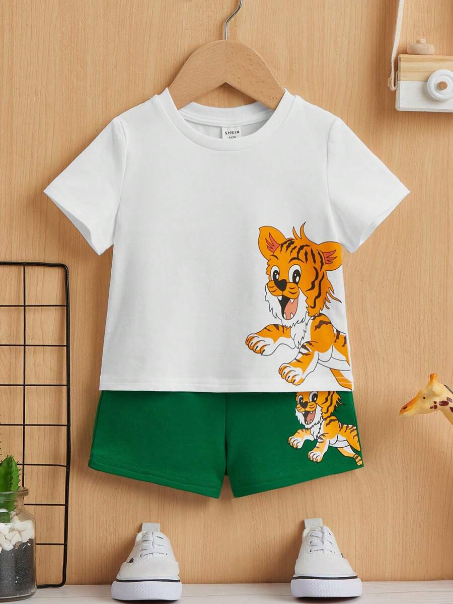 SHEIN Baby Boy Tiger Print Tee & Shorts