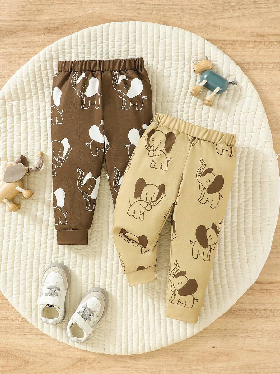 SHEIN Baby Boys' 2 Pack Elephant Printed Pants