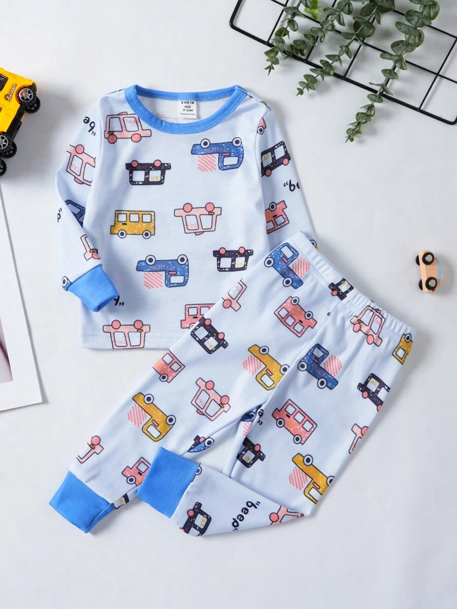 SHEIN Baby Boys' Cartoon Car Print Sleepwear Set