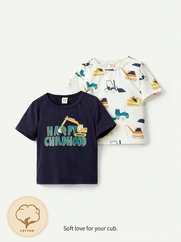 Cozy Cub Baby Boys' Cartoon Printed Round Neck Tee With Regular Shoulders