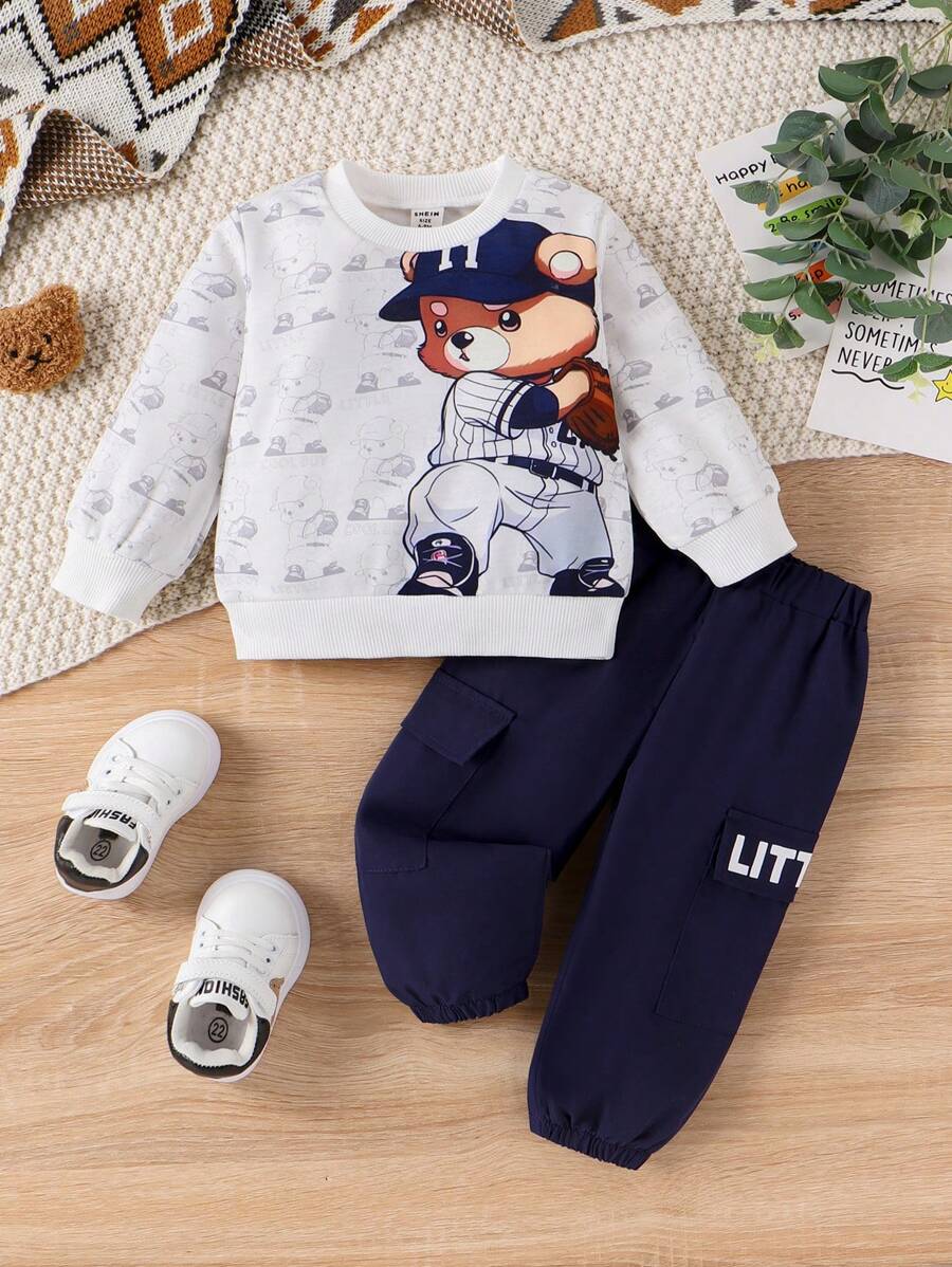 Baby Boys' Cartoon Printed Sweatshirt And Sweatpants Set
