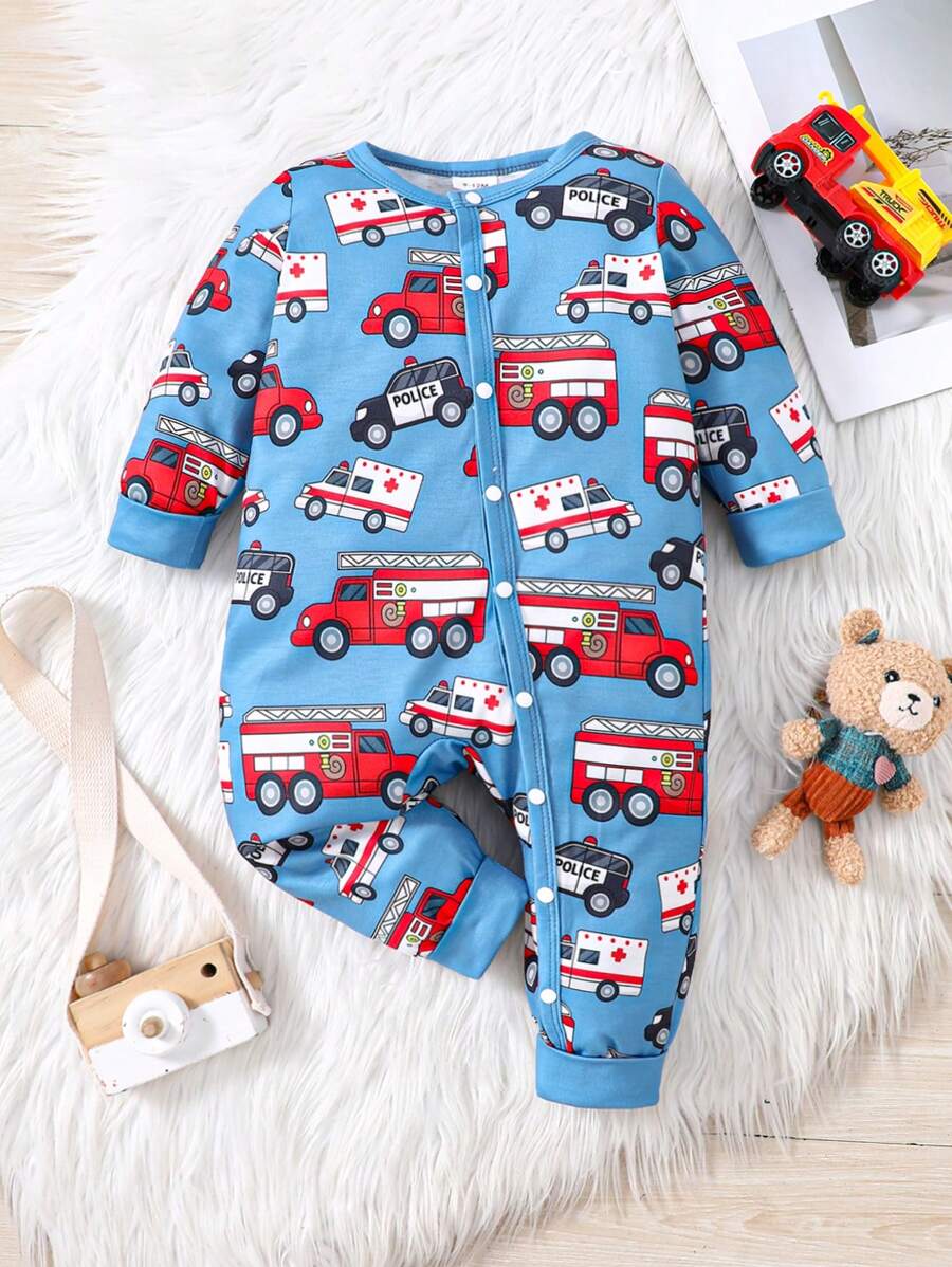 Baby Boys' Cute Printed Car Long Sleeve Jumpsuit, Spring & Autumn