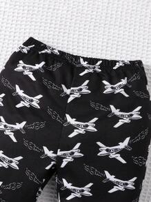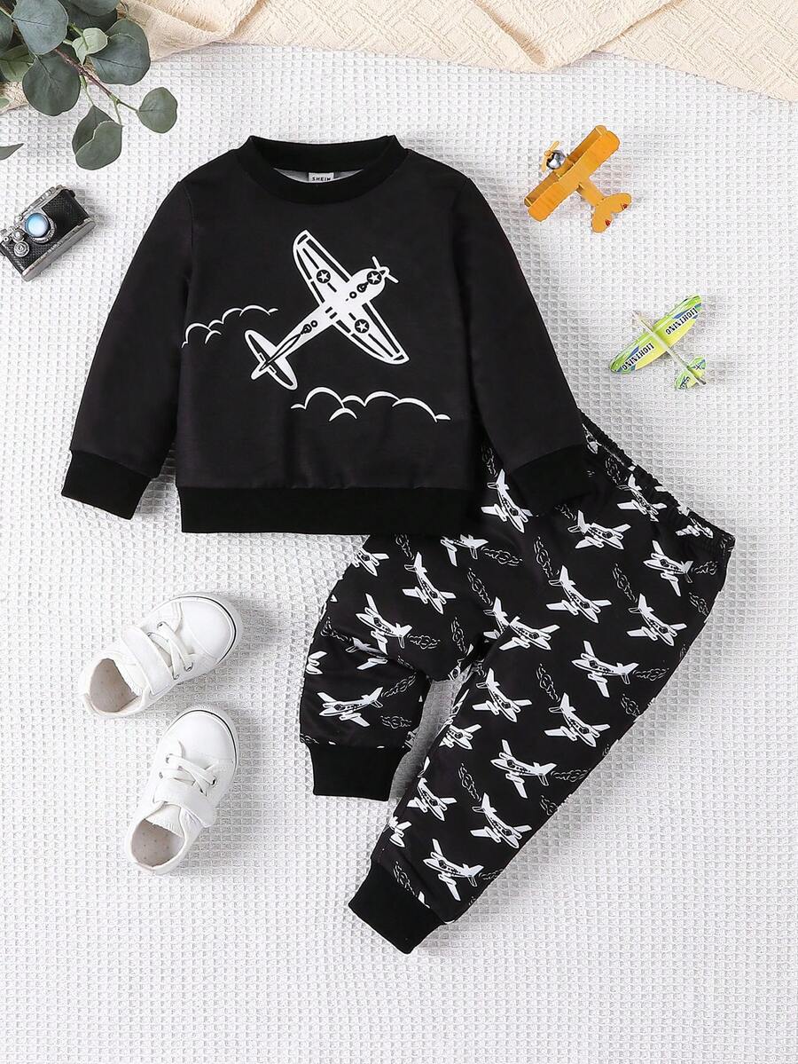 Baby Boys' Jet Airplane Fun Printed Casual Outfit For Fall And Winter