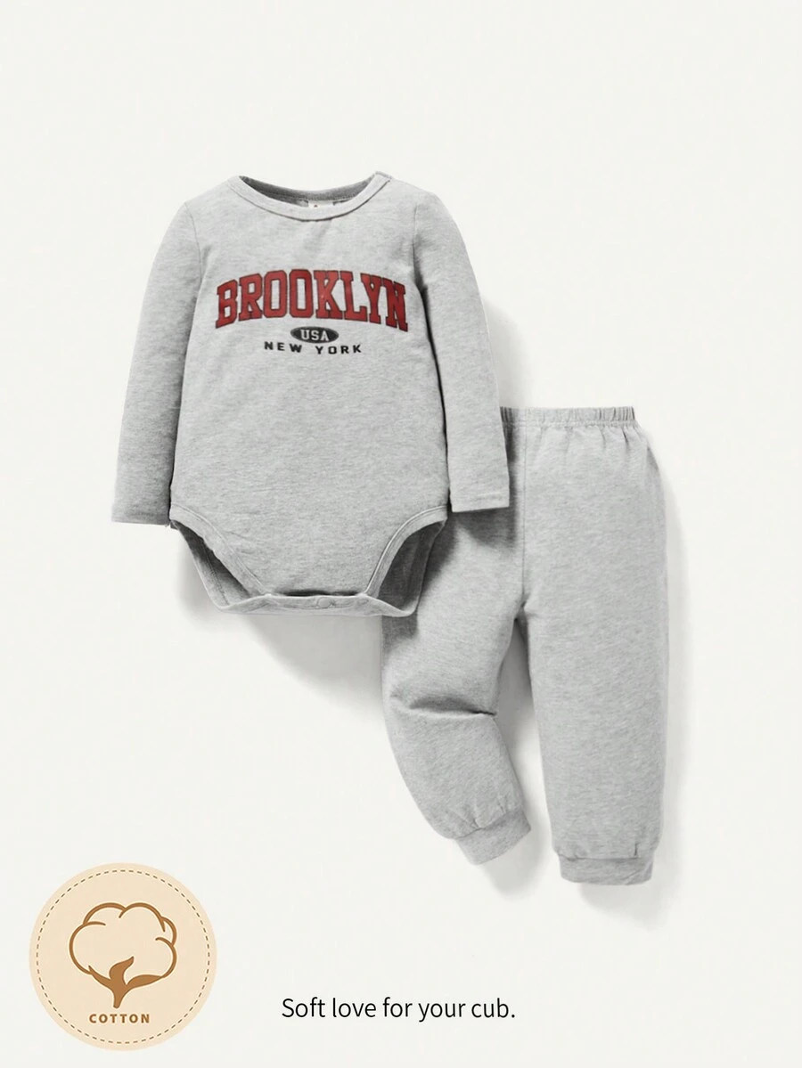 Cozy Cub Baby Boys' Letter Print Round Neck Long Sleeve Bodysuit With Pants Set