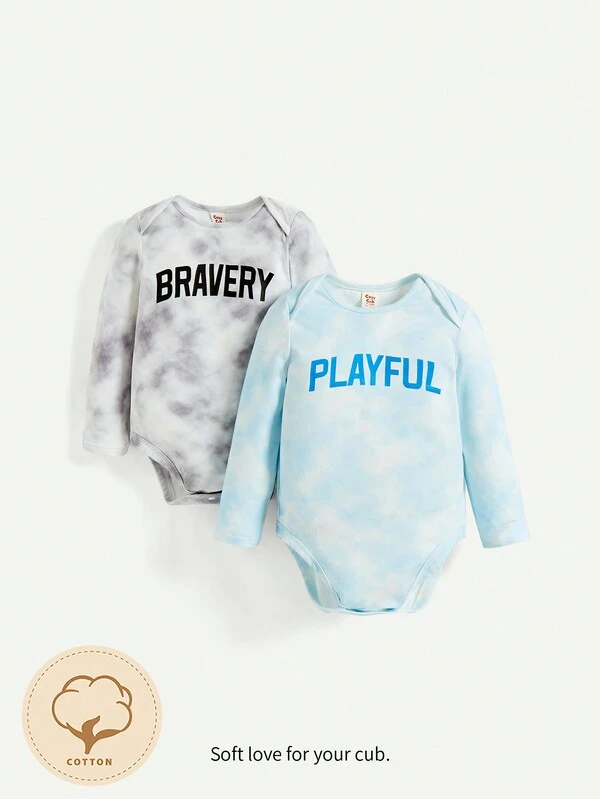 Cozy Cub Baby Boys' Letter Printed Round Neck Long Sleeve Bodysuit With Lap Shoulder