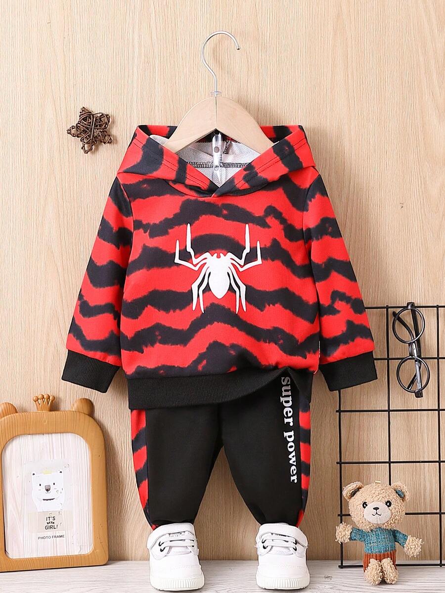 Baby Boys' Spider Pattern Hoodie And Letter Print Long Pants Set
