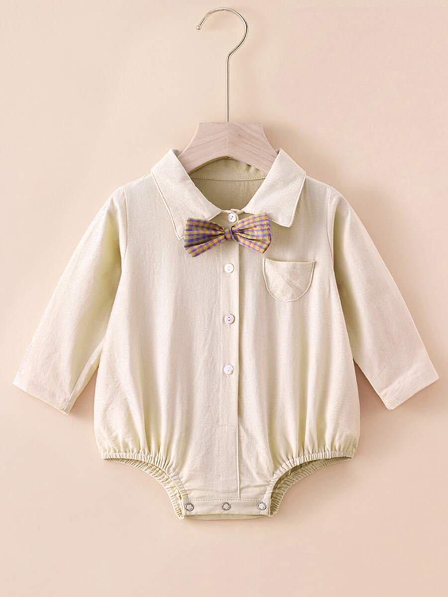 Baby Boys, Gentlemen, Bow Tie Shirt, Romper, Baby Bear Print, Fart Clothing, Crawling Clothes, Baby Bow Tie, Single-Breasted Shirt, Romper