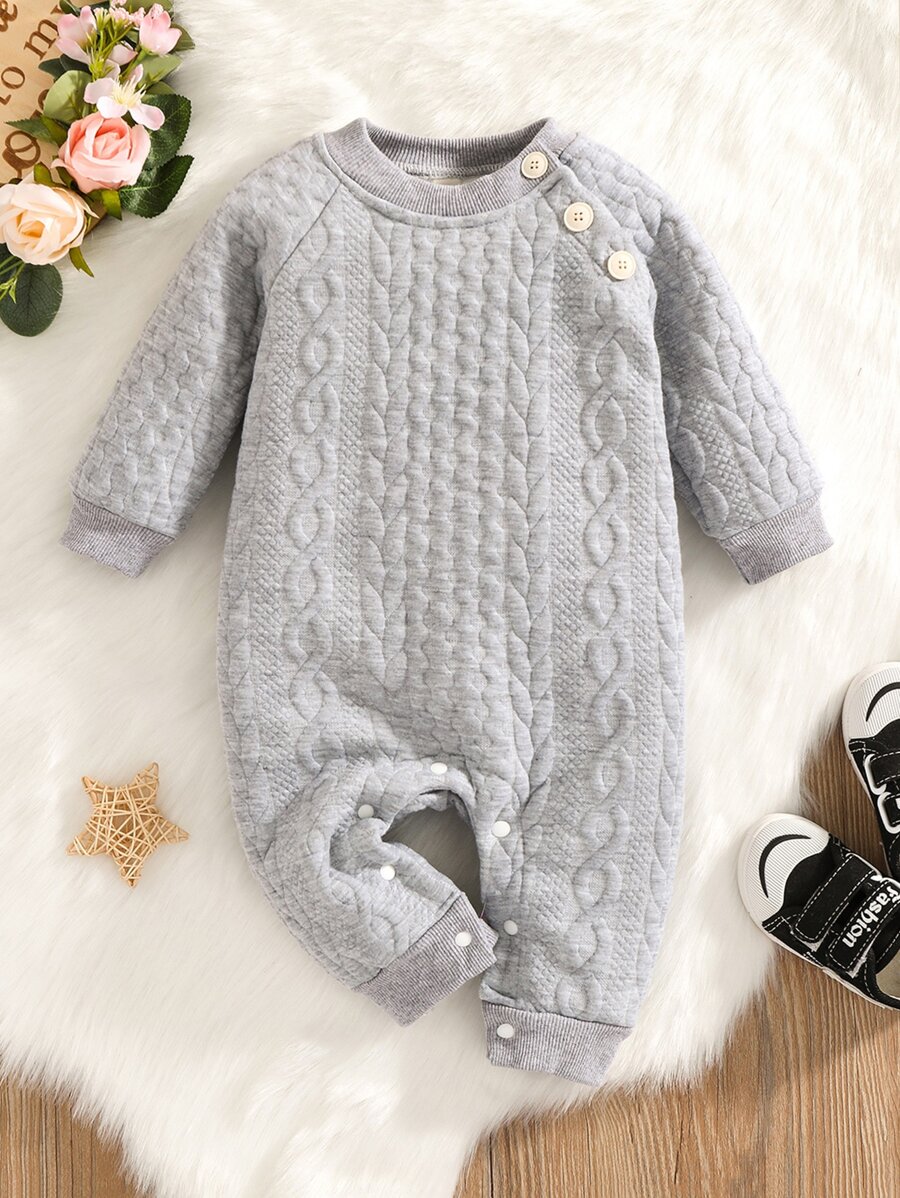 Baby Cable Textured Raglan Sleeve Jumpsuit