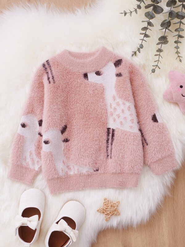 Baby Cartoon Pattern Fluffy Knit Sweater