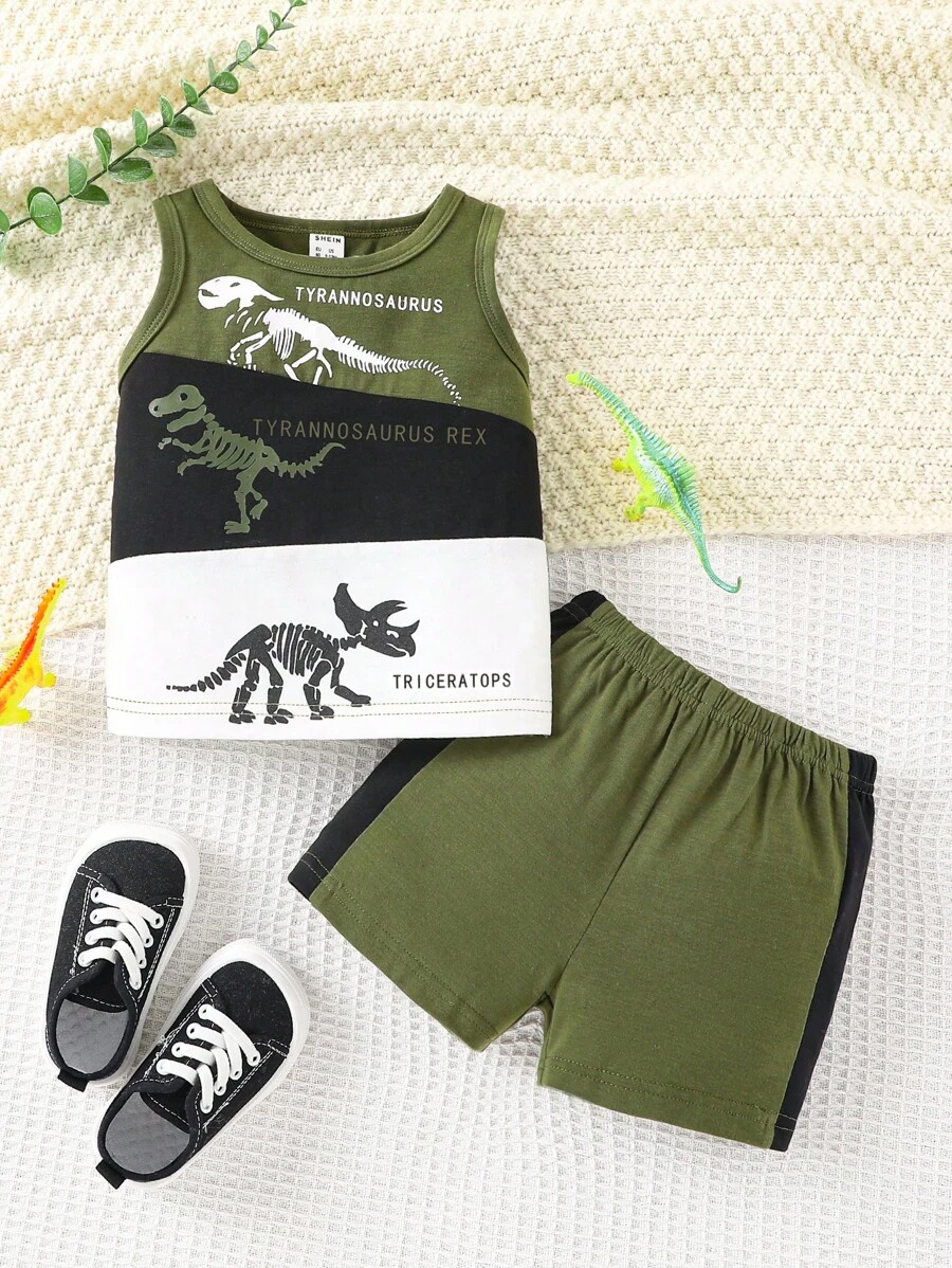 Baby Dinosaur Skeleton Print Tank Top & Shorts