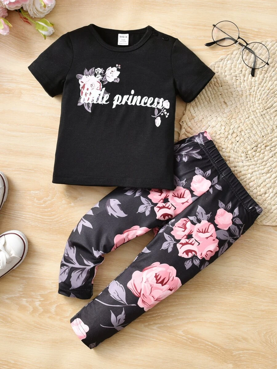 Baby Floral & Letter Graphic Tee & Pants