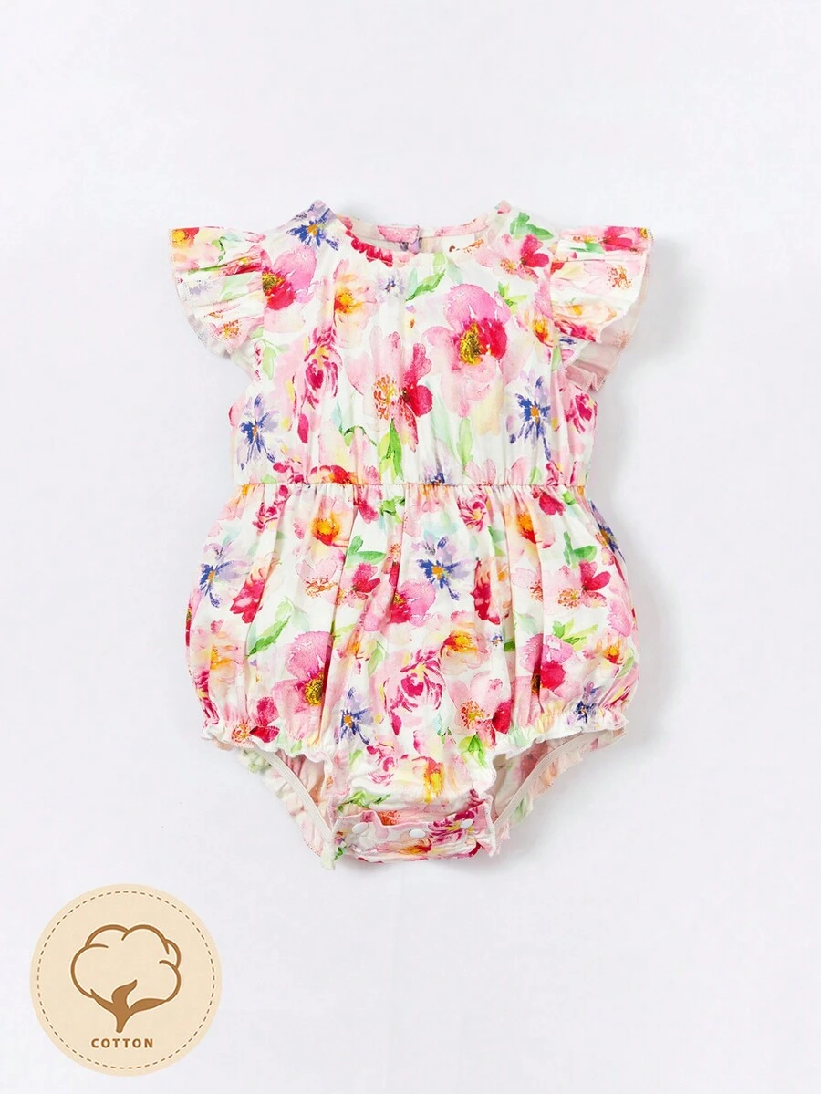 SHEIN Baby Floral Print Ruffle Trim Bodysuit
