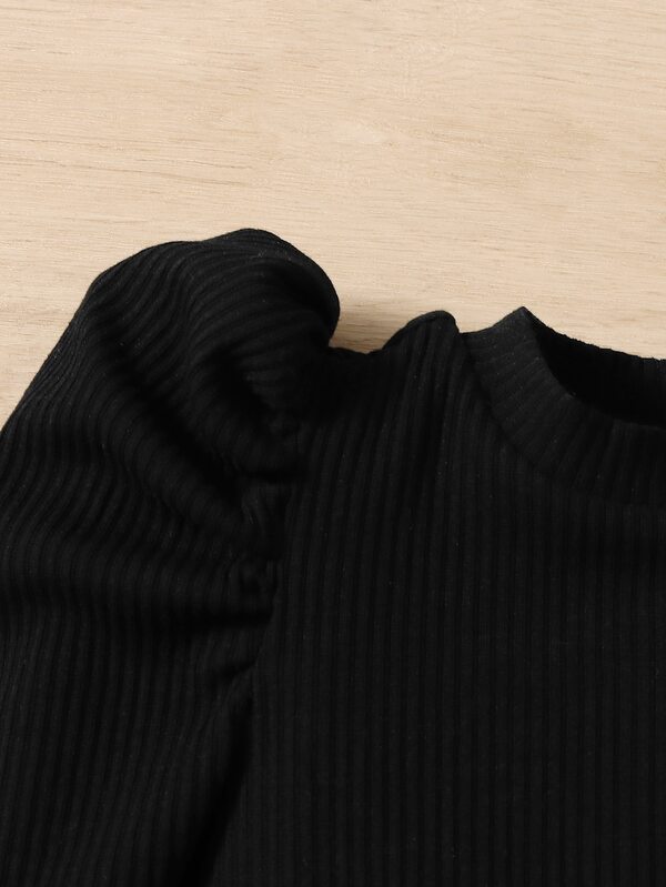 SHEIN Baby Gigot Sleeve Tee & Houndstooth Print Flare Leg Pants