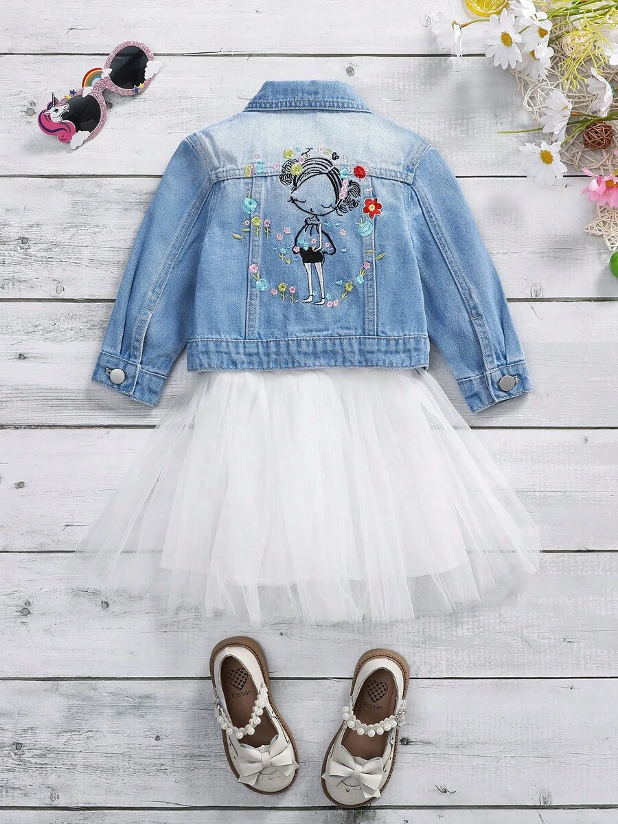 Baby Girl 1pc Embroidery Detail Denim Jacket