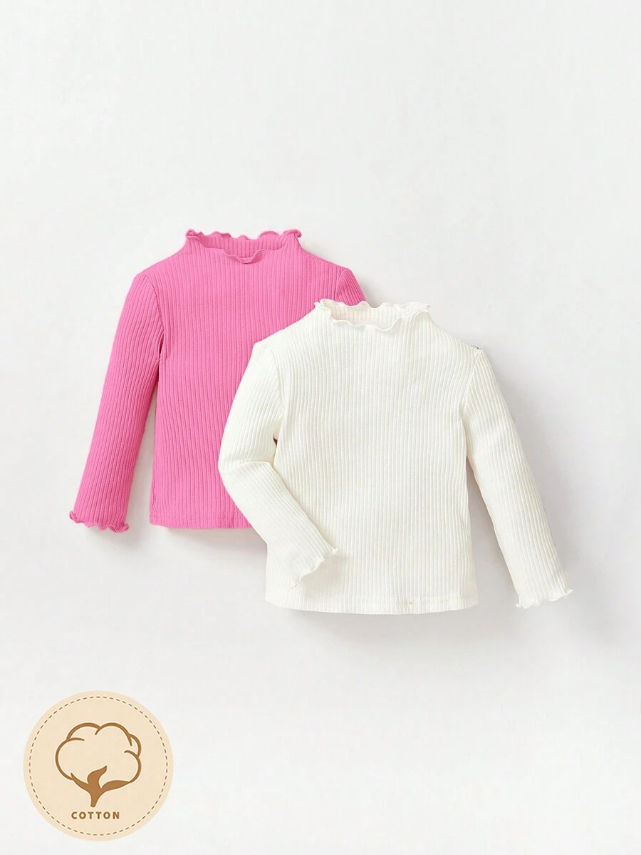 Cozy Cub 2pcs/Pack Solid Color Casual Style Baby Girls' Lettuce Trim Half Turtleneck T-Shirt