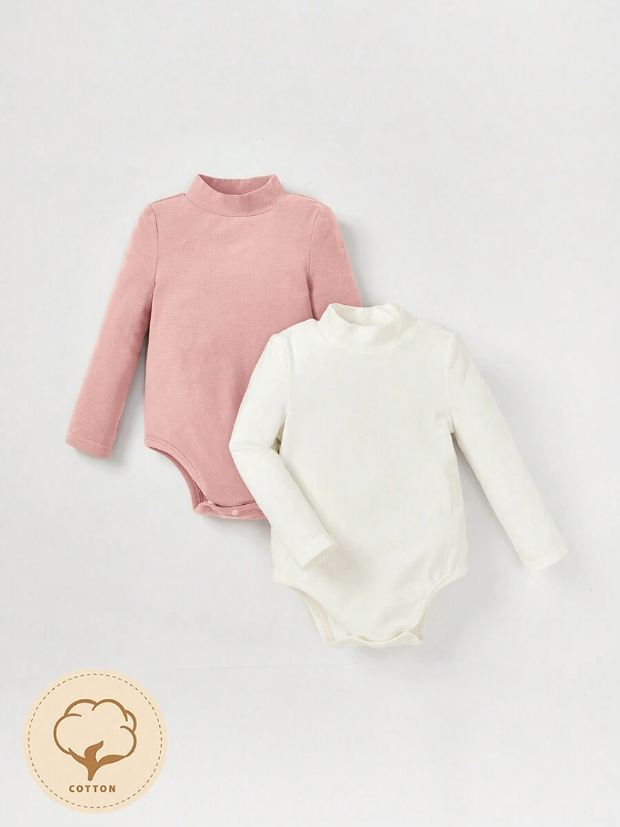 Cozy Cub Baby Girl 2pcs Solid Mock Neck Bodysuit