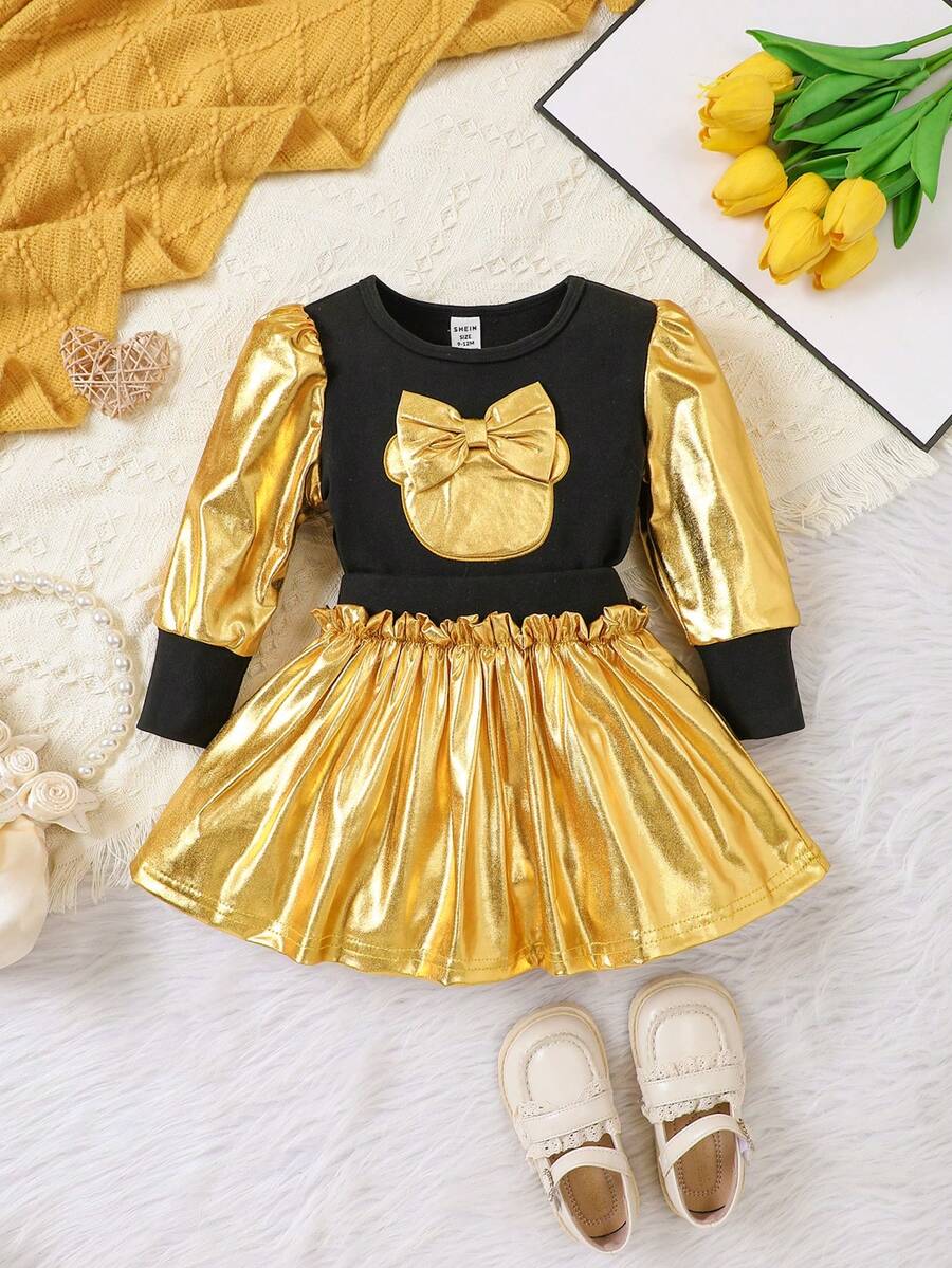 Baby Girl Bow Front Puff Sleeve Tee & Skirt