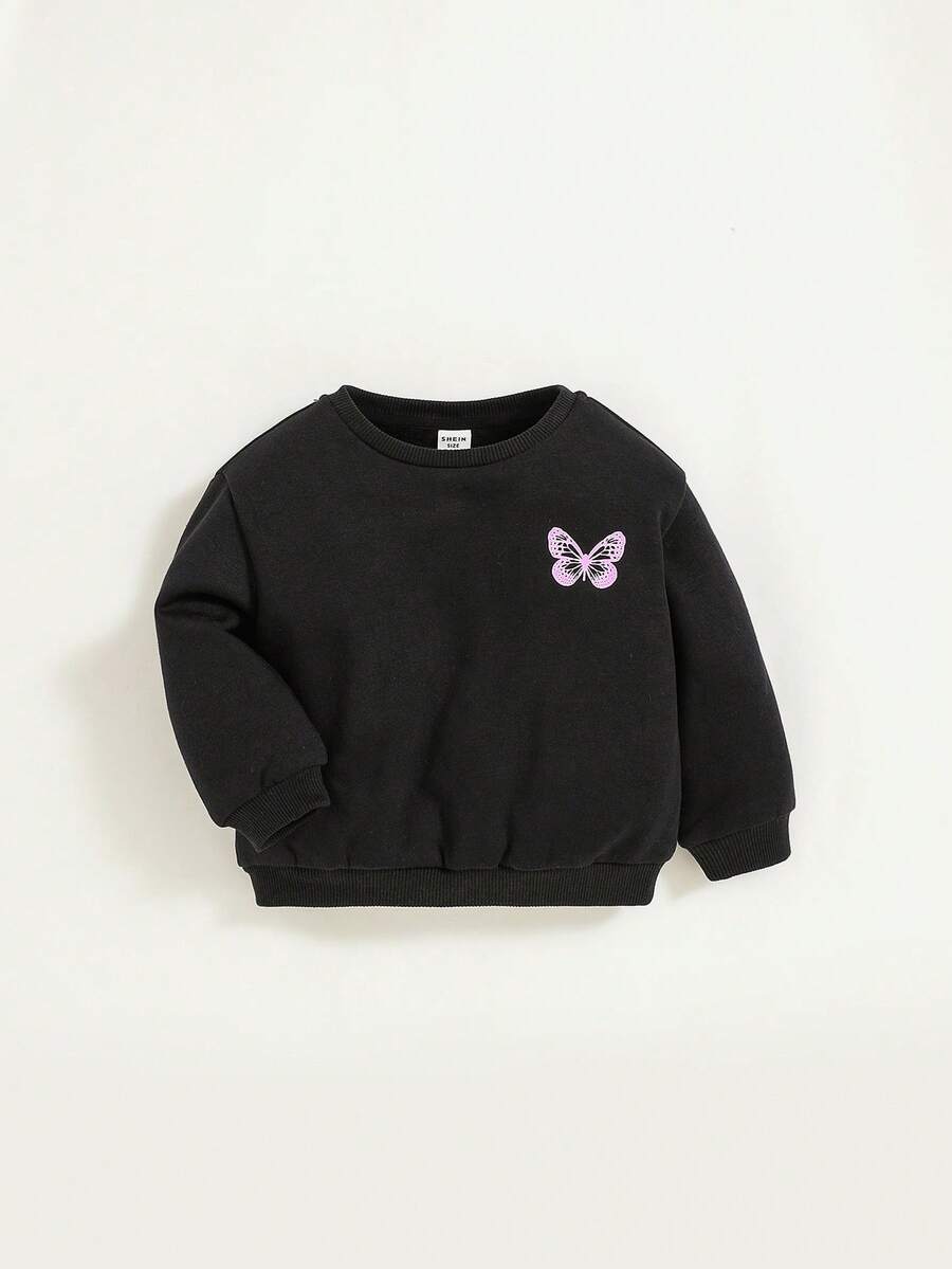 SHEIN Baby Girl Butterfly Print Sweatshirt