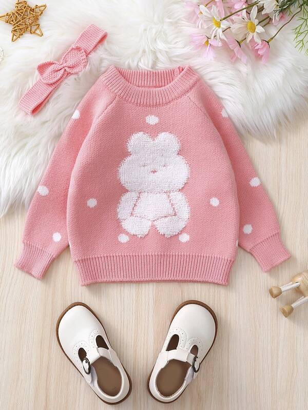 Baby Girl Cartoon Pattern Raglan Sleeve Sweater