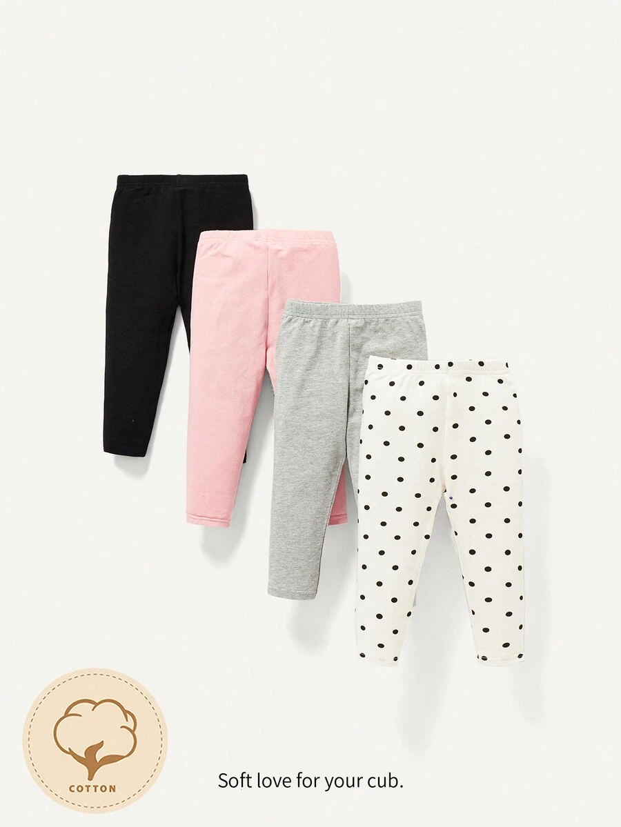Cozy Cub Baby Girl Casual Polka Dot Pattern Solid Color Skinny Pants Set, 4pcs