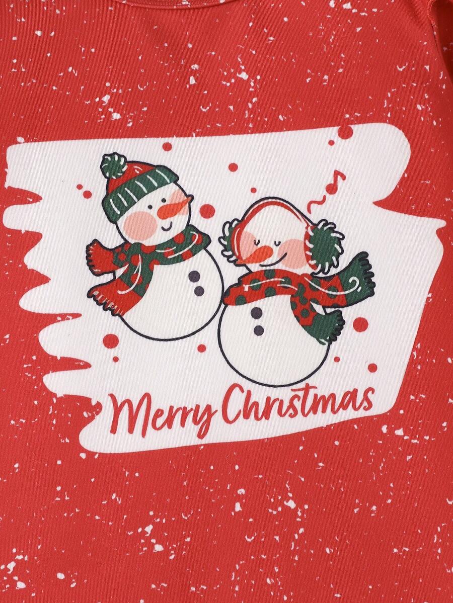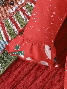Baby Girl Christmas Print Ruffle Trim Flare Sleeve Jumpsuit & Headband