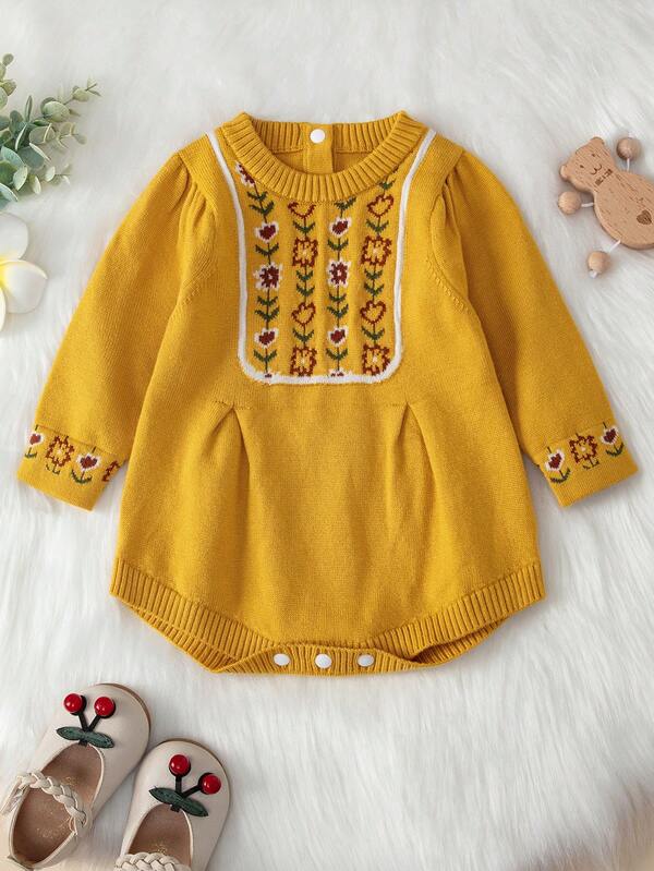 Baby Girl Floral Pattern Knit Bodysuit
