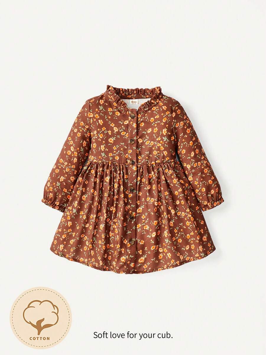 Cozy Cub Baby Girl Floral Print Ruffled Collar Long Sleeve Empire Waist Dress