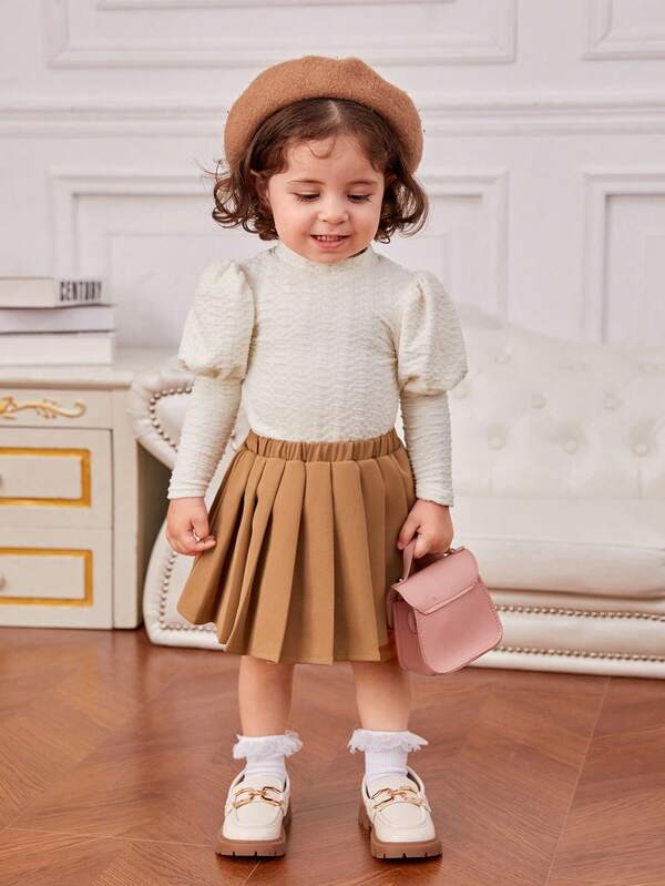 SHEIN Baby Girl Gigot Sleeve Tee & Pleated Skirt Without Hat