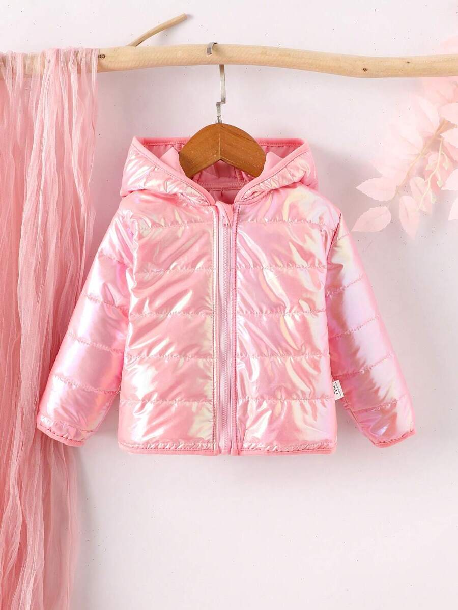 Baby Girl Holographic Zip Up Hooded Puffer Coat
