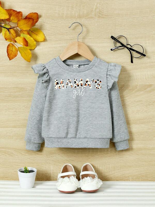 SHEIN Baby Girl Leopard & Letter Graphic Ruffle Trim Sweatshirt