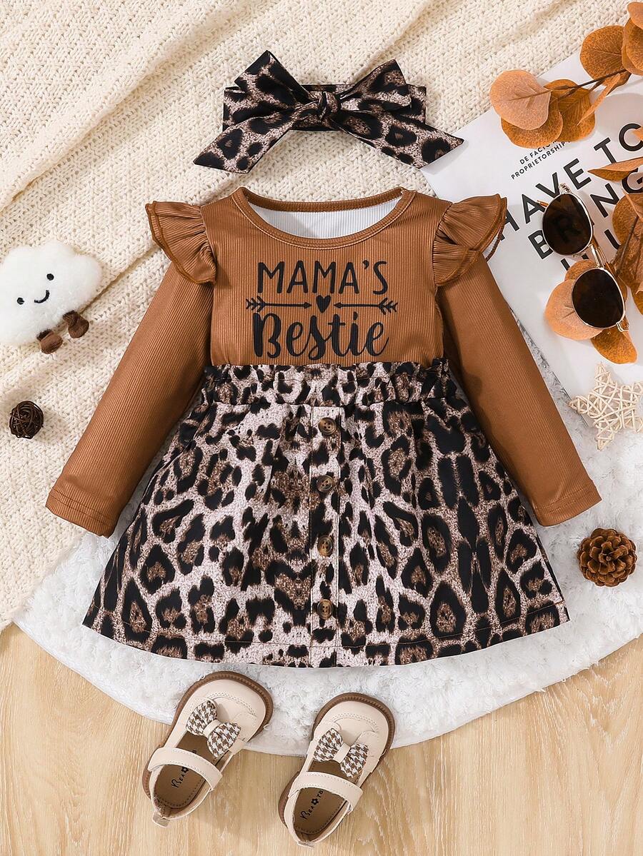 Baby Girl Leopard & Slogan Graphic Ruffle Trim Dress & Headband
