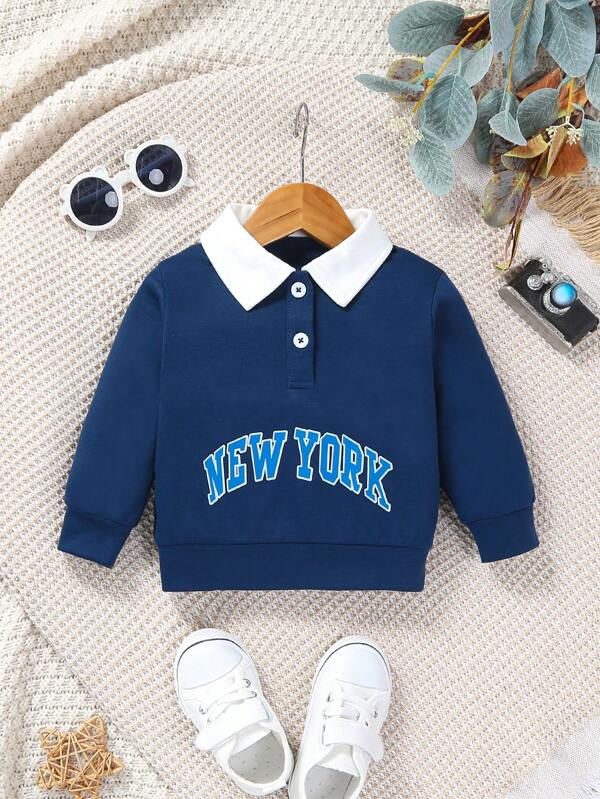 Baby Girl Letter Graphic Contrast Collar Sweatshirt