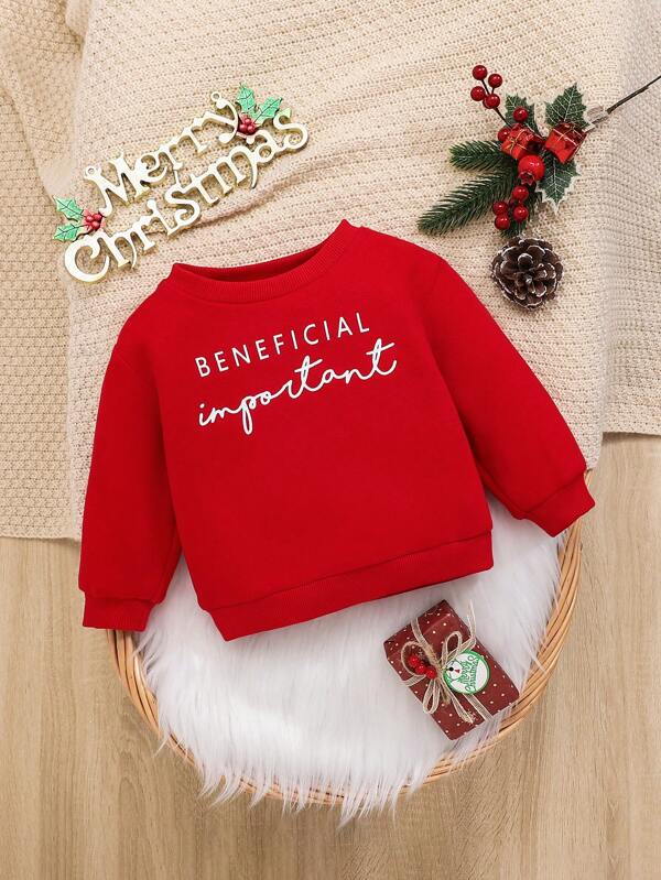 SHEIN Baby Girl Letter Graphic Thermal Lined Sweatshirt