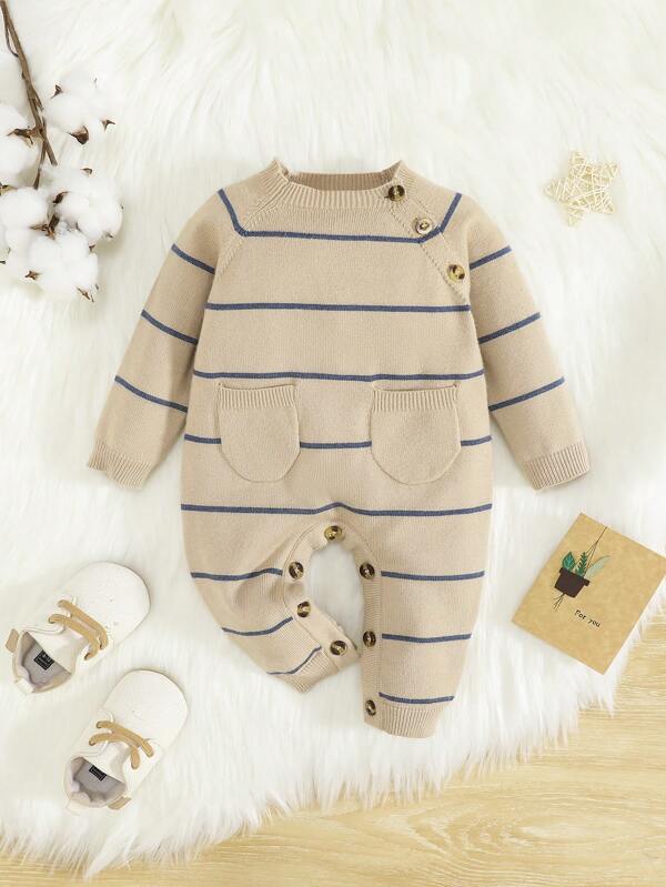 SHEIN Baby Girl Long Sleeve Round Neck Half-button Casual Sweater Jumpsuit