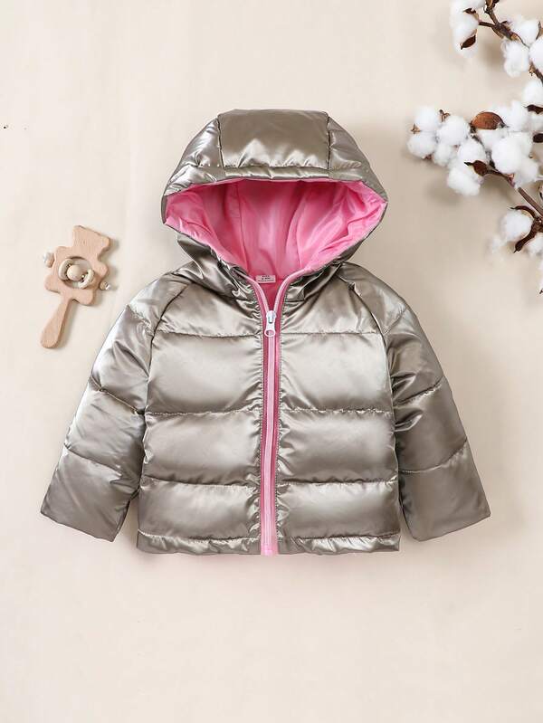 Baby Girl Metallic Zip Up Hooded Puffer Coat