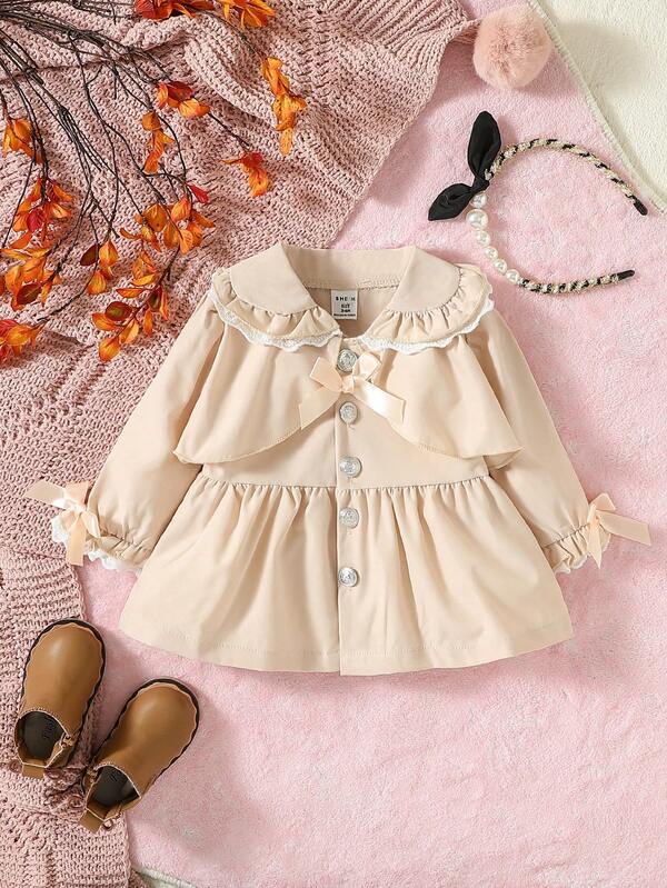 Baby Girl Peter Pan Collar Bow Front Peplum Coat