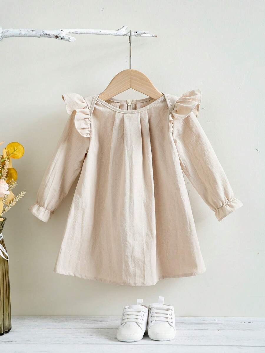 Baby Girl Ruffle Trim Fold Pleated Detail Dress