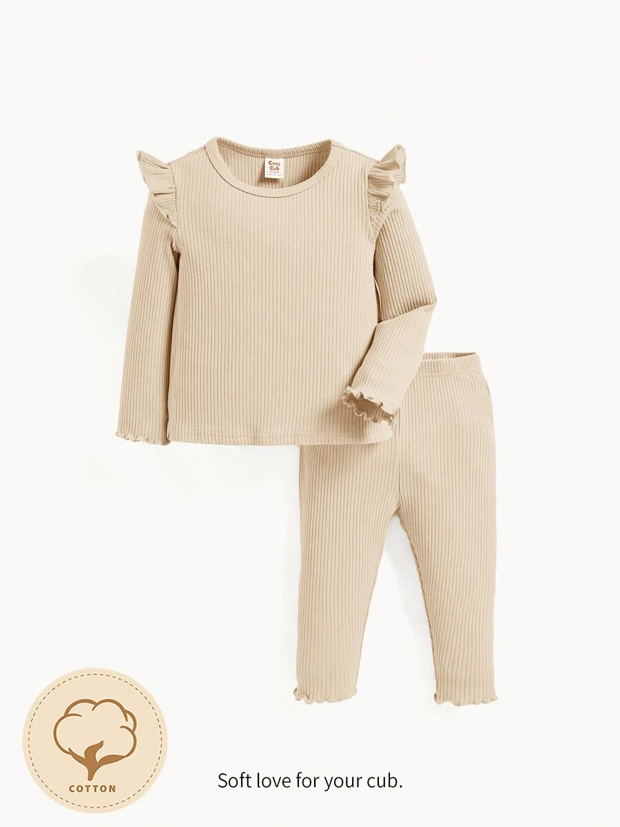 Cozy Cub Baby Girl Ruffle Trim Ribbed Knit Tee & Leggings