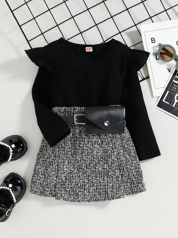 Baby Girl Ruffle Trim Tee & Allover Print Belted Skirt