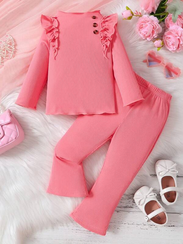 Baby Girl Ruffle Trim Tee & Flare Leg Pants