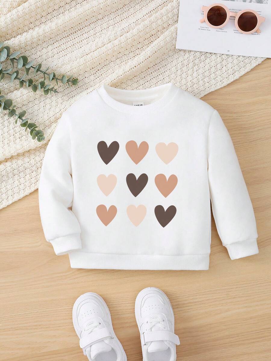 Baby Girls' Casual Heart Patterned Long Sleeve Round Neck Sweatshirt, Suitable For Autumn And Winter