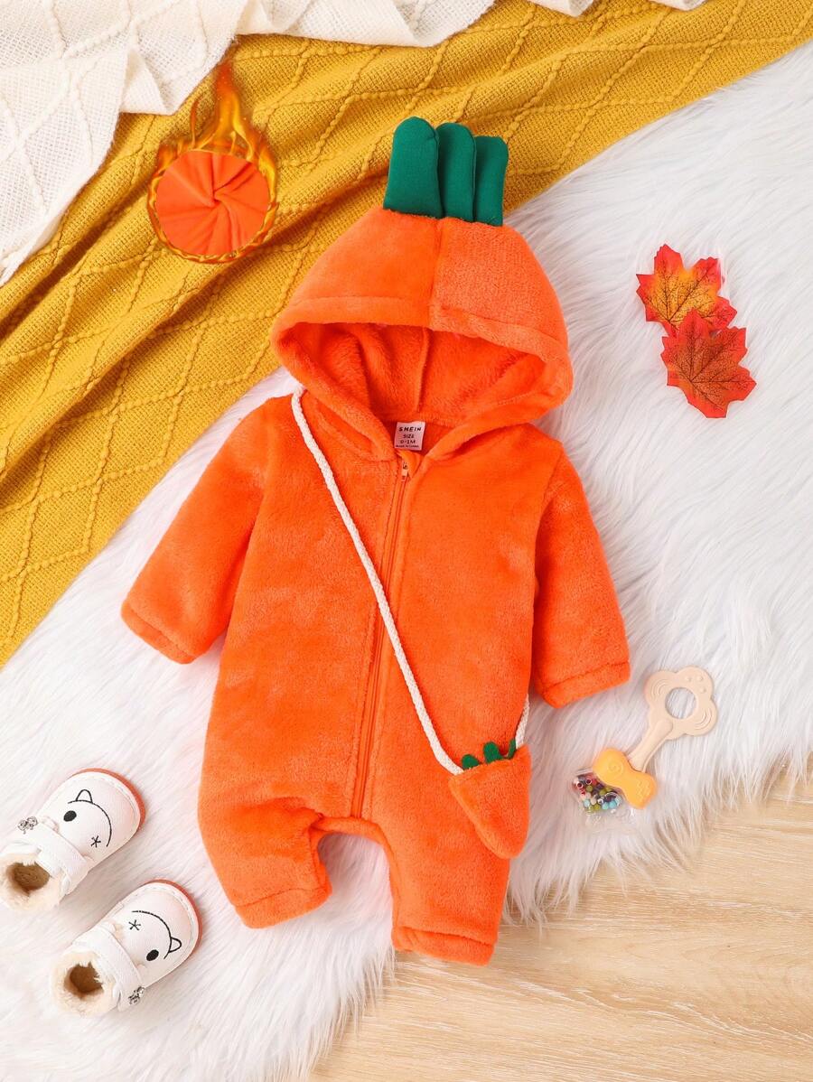 SHEIN Baby Girls' Cozy And Lovely Carrot Shaped Romper With Fluffy Material, Autumn And Winter