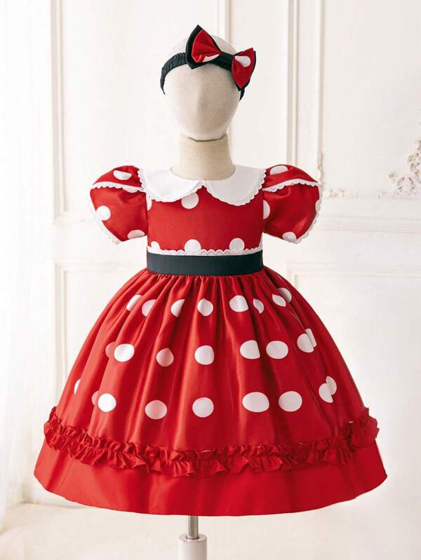 Baby Girls' Polka Dot Printed Puff Sleeve Formal Dress