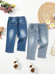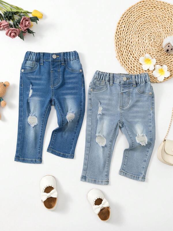 Baby Girls' Two Piece Set Of Distressed Elastic Skinny Jeans In Dark And Light Blue