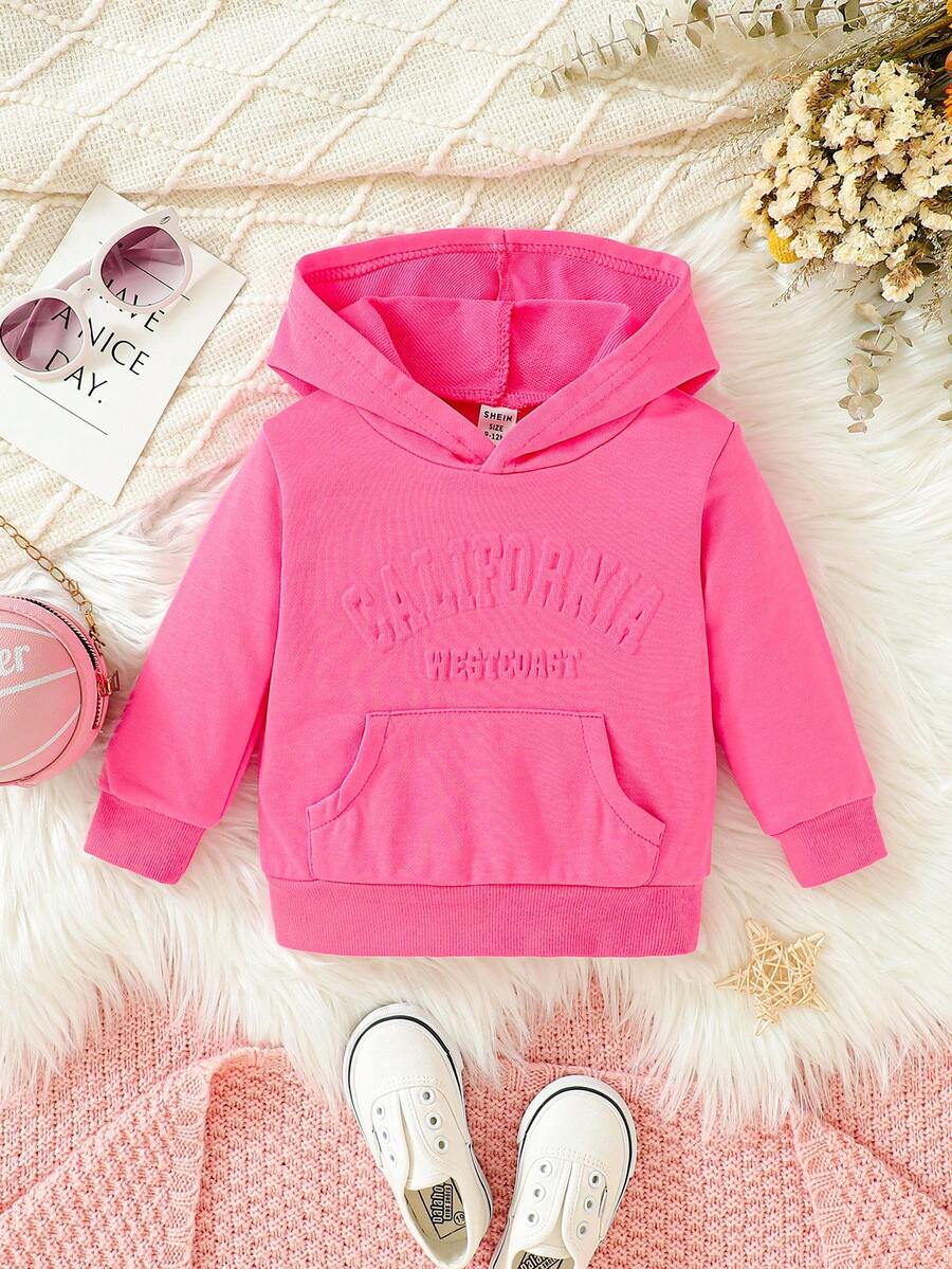 Baby Girls Letter Embroidery Kangaroo Pocket Hoodie