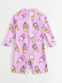Baby Girl Ice Cream Print Zipper Back One Piece Swimsuit