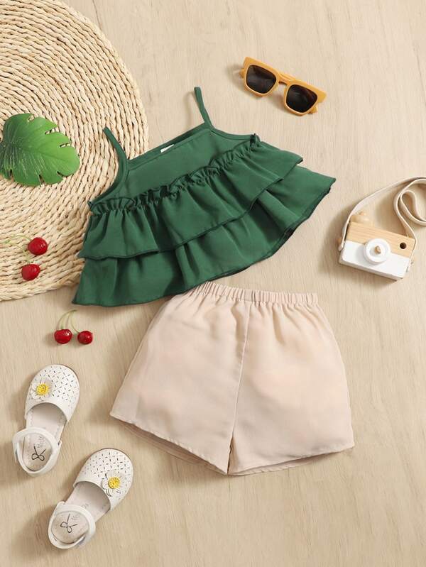 SHEIN Baby Layered Hem Cami Top & Shorts