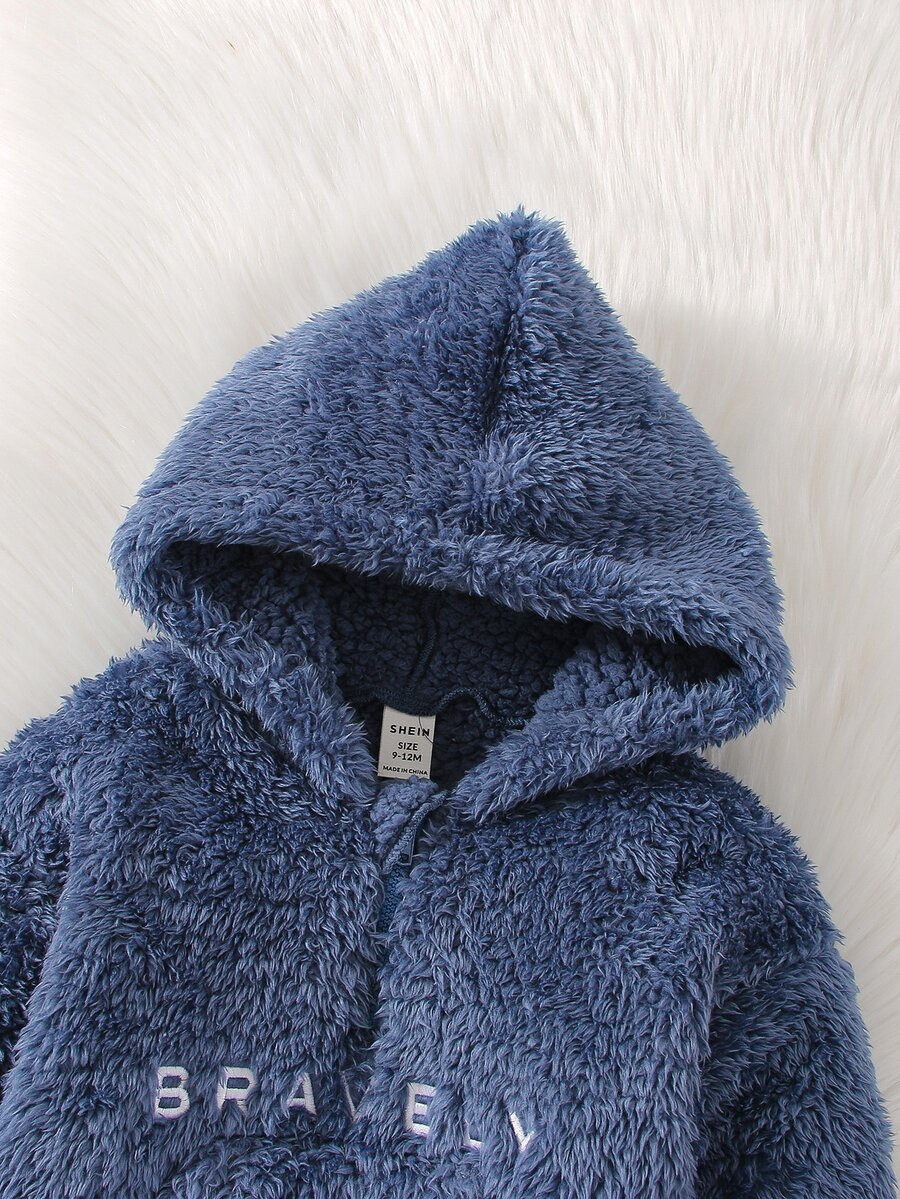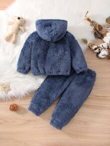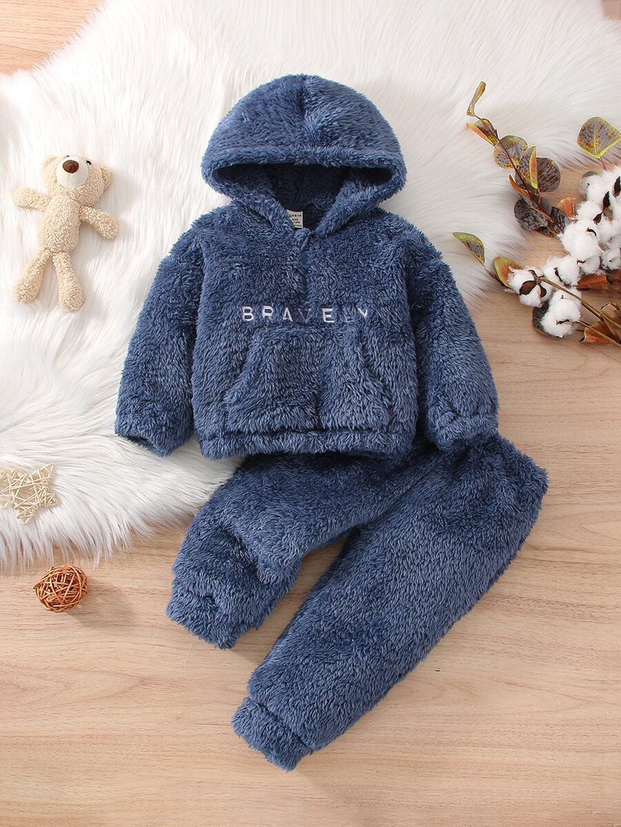 Baby Letter Embroidery Teddy Hoodie & Pants