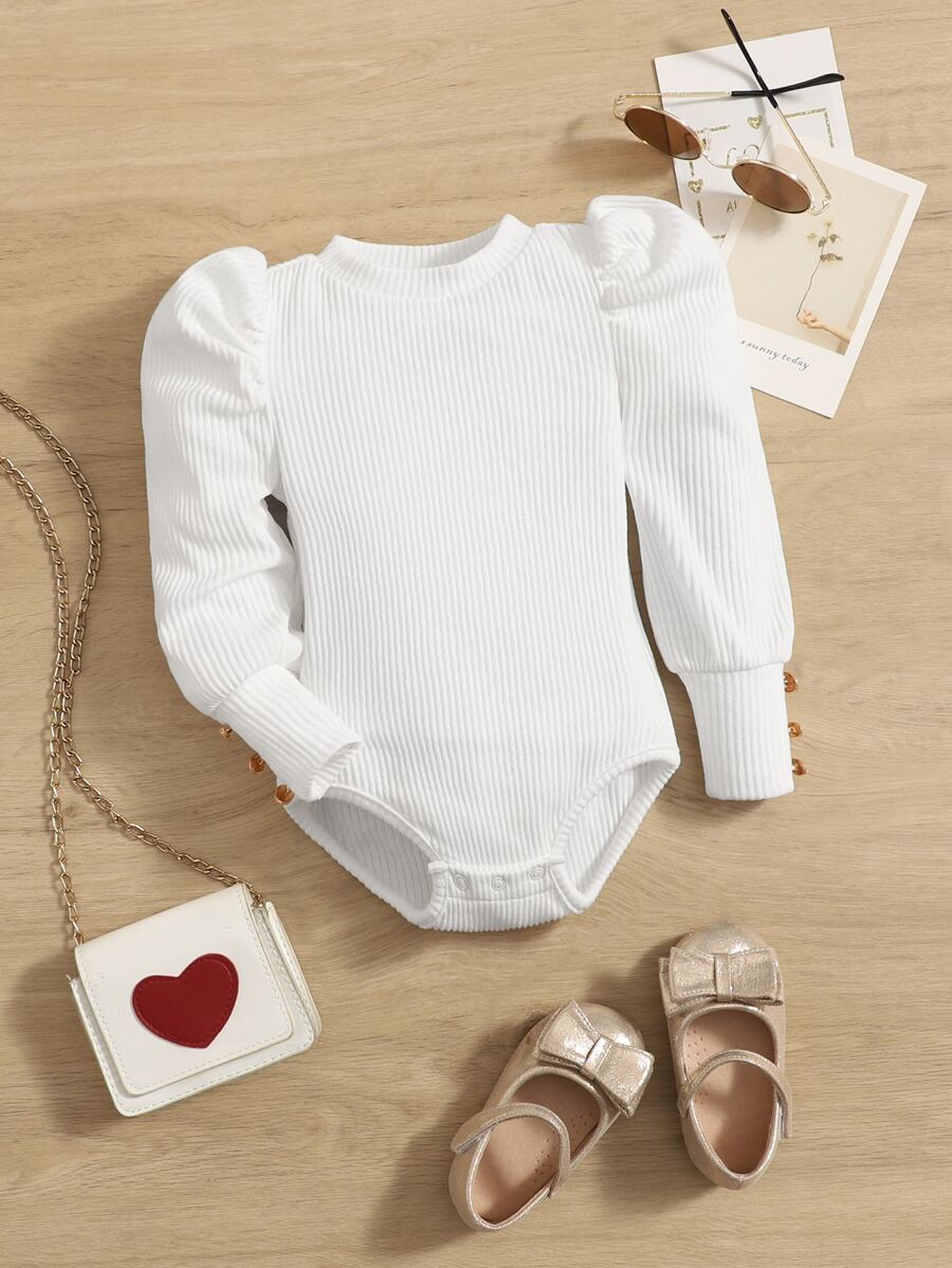 SHEIN Baby Girl Rib-Knit Puff Sleeve Bodysuit